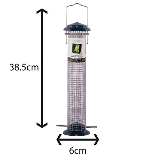 15-inch PEANUT FEEDER - This Fabulous feeder is ideal for Peanut Feeding, made from steel and comes with a metal roof for weather-protection. Hang it up anywhere in your garden to attract birds you love! The perches are metal. Collection: Sandbanks Bird Care Colour: Dark Green Items, Quantities and Dimensions: 15-inch PEANUT FEEDER - Width: 6 cm, Height 38.5 cm, Item Weight: less than 1 kg Features: Original Sandbanks Bird Care design to attract wild birds you love Metal Build - Structural strength and increased durability Simple and easy to use, refill and clean Weatherproof - Leave outdoor all year round