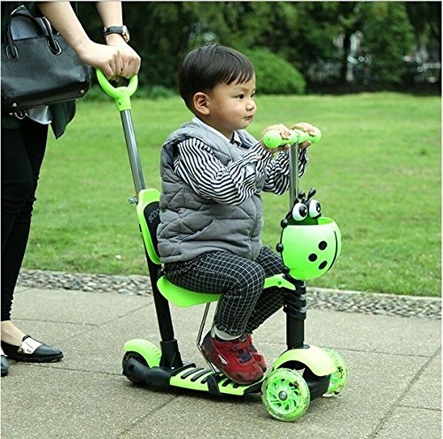 The five stages make the scooter suitable for children from 15 months up to 6 years old 5-in-1 starts as a ride-on to allow your child to enjoy the ride under your power. Multi-functional Lean to steer Early Stage with Adjustable Seat . Once your child turns 3 years old the seat can be removed and transformed into a scooter Comes with 3 wheels for extra stability for beginners PRODUCT DETAILS Wheel Material: PU Wheel Number: Three Body Material: ALL+AL, PP+ALuminum Age: 1- 8 Years Front Wheel: 120mm PU wheel Rear Wheel: 100mm PU Light Wheel With Seat Weight: 3KG Handbar: TPR Max Loading: 50KG Product Size: 55x22x51cm Carton size: 61x39.5x45cm PRODUCT SAFETY This product is subject to specific safety warnings Warning: To be used under the direct supervision of an adult