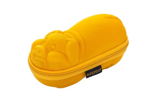 A combination pack of Kidz Banz Pink Retro sunglasses and a Golden Piglet shaped sunglasses case to put them in and keep them safe. Kidz Banz Retro sunglasses, suitable for ages 2 - 5 years, were developed in Perth, Western Australia for one of the world's harshest UV climates. Their moulded shape and good quality polycarbonate frames help to eliminate 99% of the sun's harmful UV radiation from reaching a child's vulnerable eyes. Kidz Banz Retro sunglasses lenses are UV 400, category 3 rated. Kidz Banz Retro sunglasses are adjustable and very robust as they have no moving parts, no hinges to break. The Piglet shaped sunglasses case opens up to put the sunglasses inside, a feature that toddlers and small children will love.