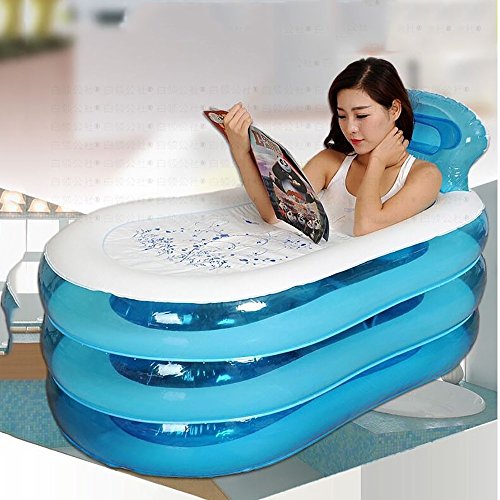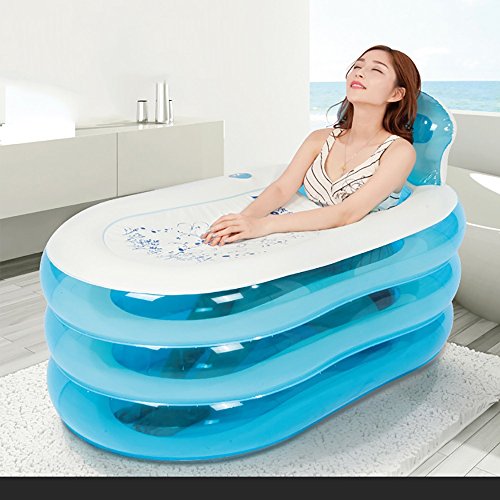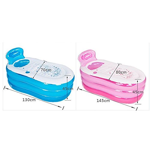 - • This bathtub is available in two colors, pink and blue, with an electric air pump. It only takes about 3 minutes to inflate.