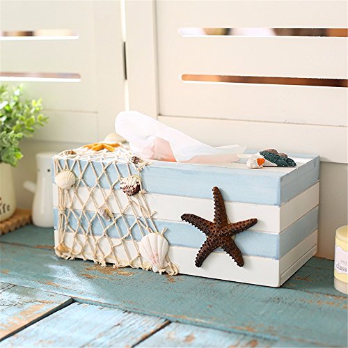 LOSTRYY Mediterranean style towel box fresh creative Home Crafts wooden paper bin, b