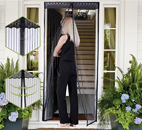 Material: Polyester fiber (polyester) encryption mesh yarn. Screen specifications: 90*220cm(W * H) High-density and antioxidant material, strong and durable The magnetic screen door come with velcro liners Prevented mosquito insects from entering while keeping fresh air in Please confirm the dimensions correct or not compared with your door when you purchase Package: 1*magnetic screen 1 roll *velcro liners