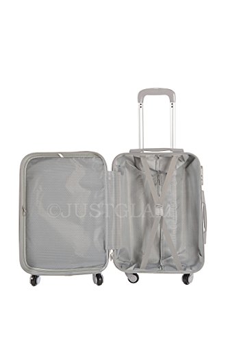 Hand luggage polycarbonate ABS, 4 wheels, front zip closure and combination. Small but functional inside zip divider and elastic clothing firm, outside two handles plus a push button for towing. Suitable for low cost flights such as Ryanair and EasyJet Dimensions external small trolley : 50x35x19 - Weight 2,5 Dimensions internal small trolley : 44x32x19 The dimensions external are on wheels, handles and other volumes included.