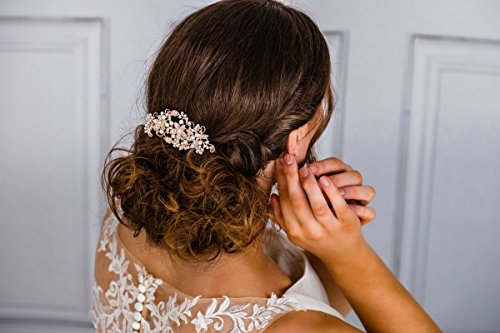 A beautiful rose gold hair comb, with a combination of pearl and scattered crystal beads. Can be worn with any bridal hairstyle, looks great with hair up or hair down. Part of our Perfect Bridal Hair accessories range. Complements other rose gold hair comb styles, so you can mix and match for your bridesmaids also. Dimensions: 10 x 6 cm