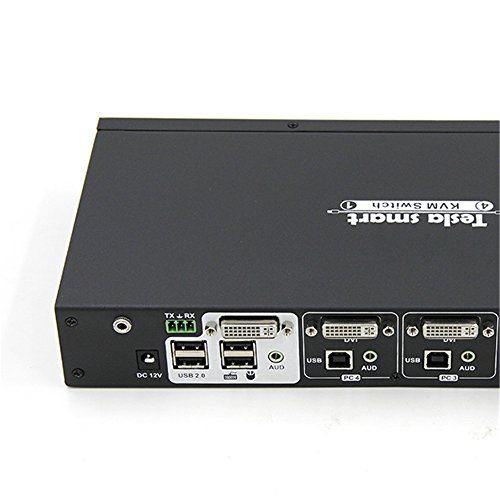 This 4x1 DVI KVM Switcher provides you with great flexibility in integrating cross-platform computer equipment easily. It makes you available to switch easily and reliably between any DVI-D computers using one DVI-D display. The Switch supports USB 2.0 hub and USB 2.0 keyboard /mouse. By using USB 2.0 hub ports on the KVM, you even can attach USB drive, printer, barcode scanner or other USB devices to the KVM. Switching can be controlled through variable methods, such as the front panel source selector buttons, RS232 commands, IP commands, IR signals and hot keys on keyboard. Features Support front panel buttons, IR signals, keyboard hot keys, RS232 serial commands or IP commands to control KVM switch. Available to use keyboard without any delay after switch host devices. Support resolution up to 3840*2160@30Hz. With extra standard USB 2.0 hub port, it is possible to connect bar code scanner, USB hard drive or other USB devices to KVM just as you have plug these devices directly to computer. Supports HDMI sources and displays with the use of HDMI-to-DVI adapters. Packing list 1 * 4x1 DVI KVM Switcher 1 * DC 12V Power Adapter 1 * IR Remote Control 2 * Rack-ears 1 * 3 Pins Jack (For RS232) 1 * Quick-Start Guide