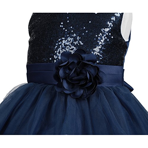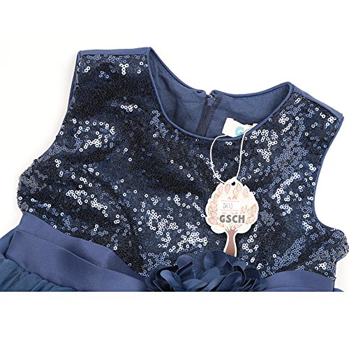 GSCH Bling Bling Sequins Camellia Flower Full Dress Bridesmaid Children's Formal Wedding Party Princess Tutu Dress (4T, Gold)