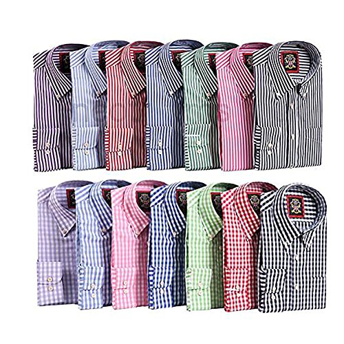 The Papplewick Twin Shirts: 2 Shirts , Sold as a Pair.NOTE: The Papplewick is a TAPERED FIT SHIRT (this is not our normal Regular generous Cut Specification)SEE OUR SIZE CHART FOR ESSENTIAL CHEST & LENGTH MEASUREMENTS.6 Sizes: Small, Medium, Large, XL, XXL and XXXL . The fit is more tapered ( but not slim fit and not our regular fit generous cut). If you want a more looser fit, buy the next size up. The Papplewick is a Classic Oxford Button Down Styling; offered as a Pair, Two shirts in same Colour Hue, One Striped and One Check at an amazing price of Under £30 for TWO Shirts, Beautifully Constructed, Elegant British Designed Shirt.The cut and fit is based on Exact TMLewin Oxford Fit/ Size Specification. This Papplewick Oxford is more TAPERED than our normal Regular Fit Shirts, so you may wish to buy the next size up if you want a loser fit. Check our size spec with essential measurements to see which is the correct size for you.Subtle notation such as inside Cuffs are in the opposite fabric design, A check Shirt will have a striped inner cuff lining. Janeo branded 3 Tier colour buttons with the back side matching the colour Hue of the shirt, A front right pocket.The PAPPLEWICK comes in 7 beautiful tonal colours.Marine & Ocean (Navy); Raspberry Pinks (Pinks); Alpine & Cedar (Greens); Noir et Blanc (Black & White); Red or Red (Red); Bluebell & Lilac (Purples); Azure & Aqua (Royal Blues)Our reviews do all the talking about our shirts! See our entire collection; The Windsor, Hampton, Canterbury, the London Plains, and the new introduction of the New Windsor Oxford button-down. The Kew Plaid and this Papplewick is our latest addition.Sold As: 2 Shirts Pack, supplied in Drawstrings Bags£24.95 Small & Medium£26.95 Large & EX Large£28.95 2XL- 3XL