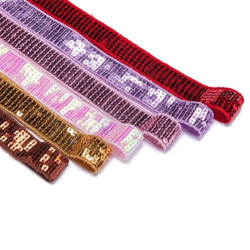 NEOTRIMSUnique Square Sequins Embellished Ribbon Trimming 24mm. Indian Salwar Kameez Sari Embroidery, 5 Sequins Deep. 22 Colours for Apparel, Crafts and Home Décor. Shimmer Pink, 5 Lines, 4 Meters