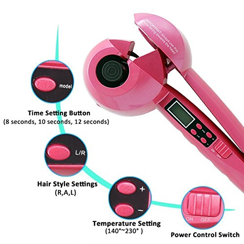 Technical Specifications: Power: 50W Plug: UK plug Color: Pink Time setting: 8s: Big wavy hair 10s: Medium wavy hair 12s: Soft medium curly hair 15s: Tight curly Hair Temperature setting: 140-160℃: Suitable for soft hair or dyed hair 180-200℃: Suitable for general hair 220-230℃: Suitable for thick and hard hair or natural curly hair Curling direction setting: Right, Left, Auto Voltage: 220-240V Using Tips: 1. Please ensure your hair is dry and combed through. 2. The hair curler is ready for use when the indicator light has stopped flashing. 3. Please ensure that the LCD screen part is facing towards your head when using the curler. 4. Separate a section of hair not more than 3cm wide and place straightly through the center of curler. 5. Close the handle to allow the hair to be automatically taken into the curler. Notes: Featuring one timer mode to accurately form the curl, the styler will be beep 1 time while the hair is held in the chamber and then beep 4 times in succession to indicate when to release the hair from the styler. Only after the 4 times beep can the styler finish perfect curls. Please never remove the styler from the hair before the 4 times beep but at the first beep only. Please never remove the styler from the hair before the 4 times beep but at the first beep only. Stop at the 1 beep will get no curls only. The curler will beep to indicate when finishing curling a section of hair. If you do not loosen the handle, the curler will stop beeping after a while. If you have taken too much hair or hair is not straight to go through the center of curler, the curler will stop and beep. Package Included: 1 x LCD Hair Curler 1 x Cleaning Hair Clip 1 x User Manual
