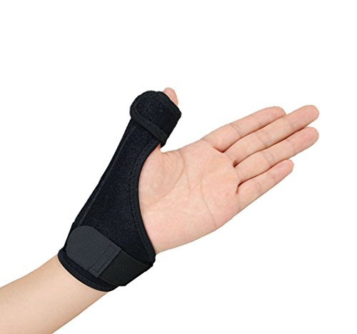 Gelible thumb spica splint is designed for holds your thumb in place and keeps your thumb away from the palm of the hand. Our Wrist & Thumb Support provides a low-profile, custom fit that is both functional and comfortable. The unique design combines two adjustable straps plus a removable mental splint to address various pathologies of the thumb including tendonitis, basal joint arthritis and instability of the carpometacarpal (CMC) joint. You can wear the thumb spica splint while sleeping and can also keep on for most of the day. The breathable neoprene makes the splint a highly comfortable and lightweight alternative to the thumb spica cast. Ergonomic design allow it easy to put on and take off. Product Specification: Size: Adjustable, Fits wrists up to 10" in circumference for both men and women. Material: OK fabric, Metal splint, PU, Lycra Color: Black Fits both left and right hand Instruction: 1.Open the product. Check it is well. 2.Slide hand into support, with metal splint positioned along the lateral of the thumb 3. Paste the wrist and thumb Velcro. Adjust the Velcro straps until fit is firm, yet comfortable. Attention: 1. Hand wash in cool water with mild detergent. Please take plate out when wash. 2. Do not use bleach or fabric softener. Air dry, not iron or dry clean. 3. Please consult doctor if there is any discomfortable and doubt.