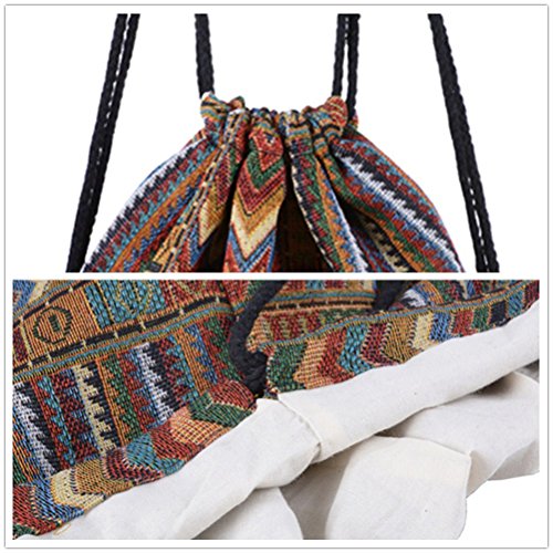 Specifications: Available models : Model A , Model B , Model C , Model D Material : Thick knitted fabric + inner cotton,lightweight and durable Size : 35cm(Length) x 40cm(height) /13.8 x 15.7 inch;(measured by different ways, small error is allowed) Description: Can foldable, comfortable and very convenient.Adjustable length straps for carrying comfort(just re-tie the knot further along the string to shorten) The fabric is quite rough,like hand-woven felt,very thick but soft,wild and Bohemian style.Most double lining,cotton fabric and wrapping. Can store iPad, wallet, phone, pens,clothes, shoes and other small items.Can be used as School bag, Traveling bag, Shopping bag, Gym Bag, Hiking Bag, Mountaineering Bag, Camping Bag, etc Put it on your back and you won't even notice it's there when out on short excursions or bike trips. From the park to the gym, this grab-and-go drawstring bag is made to be stuffed on the run without slowing you down. Washing instructions : Using neutral liquid detergent in cold water with a soft brush, do not heavy brush printing part, do not bleach, do not exposure, natural dry, the temperature ironing.(Canvas products,slight fade is a normal phenomenon, add salt or vinegar can reduce the fading phenomenon at the initial washing) Note: Packaging: 1 x Drawstring Backpack. The actual item's colour maybe slightly different from the picture shown due to the lighting when the picture was shot and the monitor. It's can't avoidable that you will receive the backpack with some smells from original material as it's brand new.The smell will be gone if place the backpack in freely circulating air for 2-5 days.