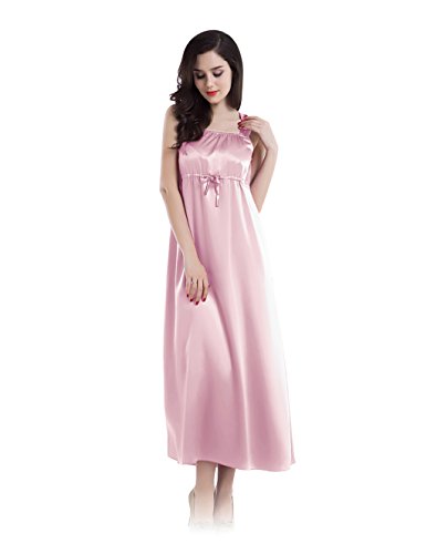 Material: 100% silk of 22 Momme silk weight; International Certification: OEKO-TEX Standard 100; feature: *One-piece pullover nightgown in full length; *Square neckline with comfortable wide shoulder straps; *High waist design, tight with silk drawstring. 4 Sizes Available.