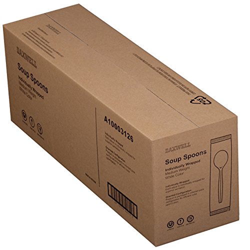 Daxwell Medium Weight Polypropylene Soup Spoon, Individually Wrapped, White (4 Bags of 250)