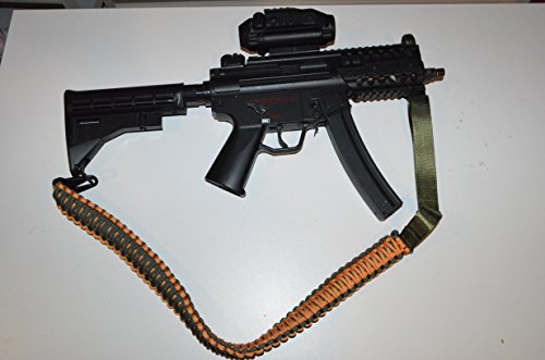 These slings extend to 46" long. Not like others you see which are very short. They include hook clasps that DO WORK on stock A R's. Compare our Hook to others and see the difference. Theirs will not close correctly or they have tiny clasps that fit no swivel. Includes: 1 Paracord sling - Orange / Green Specifications: Hook clasps Adjustable 36" to 46" 1 or 2 p oint (hook clasp onto other clasp) We Sell these in many different colors.