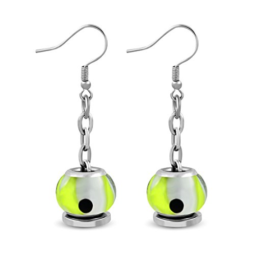 Stainless Steel Evil Eye Spinning Glass Bead Long Drop Hook Earrings (pair)