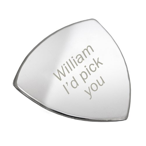 This fine quality silver plated personalised Plectrum will 'rock' their world! If they love music more than you, this is the perfect gift to win over their heart or celebrate your time together. Personalised with a name of your choice followed by the fixed text 'I'd Pick You', a pun guaranteed to make them smile. The only question now is, where will they frame their 'pick of destiny'? How do I enter the personalisation? Add the item to your basket and click "This item is a gift" Proceed to the checkout In the "Free Gift Message Box" enter your personalisation. Please take care when entering your message as what you enter here will be exactly what appears on the product. We can Engrave this plectrum with any name up to 12 characters including punctuation and spaces. The words 'I'd Pick You' are fixed. If the character limit is exceeded it may result in the lettering being too small or distorted. If there is a problem with your message or order we will need to contact you so please also enter an email address and phone number. Please note if you would like your item laid out in a specific format please use # to indicate a new line on your item. If you do not do this we will use our best judgement when laying out this item.