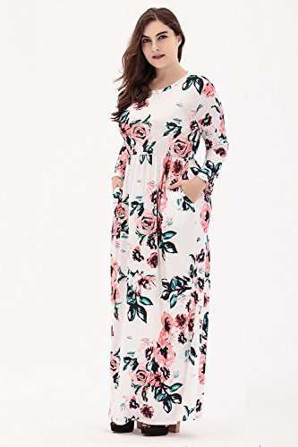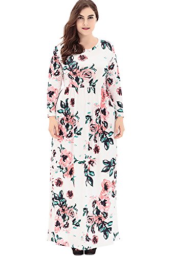 ONECHANCE Women Long Sleeve Round Neck Maxi Long Floral Dress Plus Size Color White Size 14w