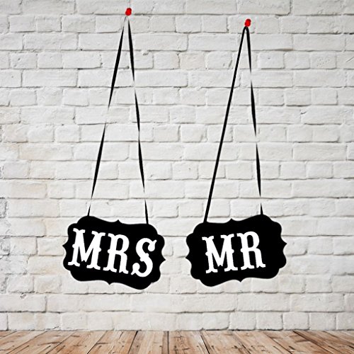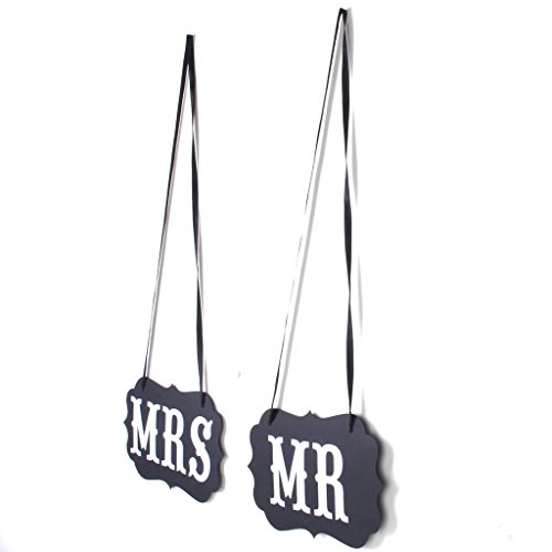Description:Material: Paper + Ribbons Color: Black + White Each sign card measure: Approx. 24 x 18cmRibbon length: Approx. 1.2m / 4.72 inchQuantity: 2pcs/setNote: Ribbons and letters come pre-folded, you need to string them together using ribbons.And you need to cut the ribbons into 2 pieces after you received them.Package Including2 x sign cards2 x 2 ribbons