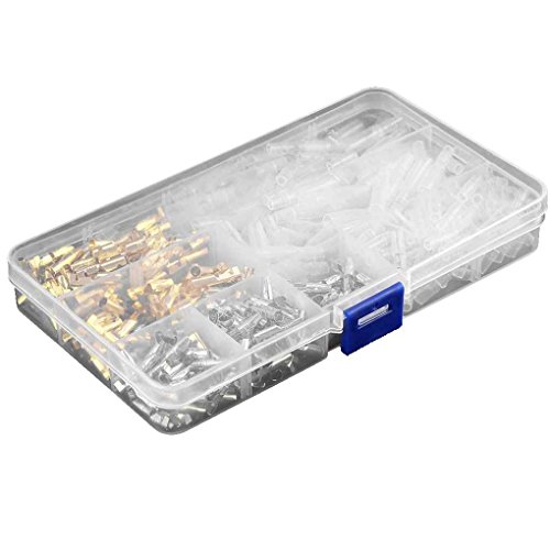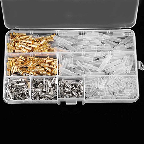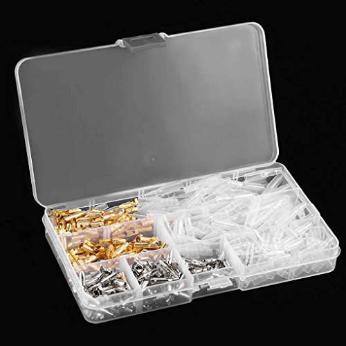 Specifications:Model: CZ0100357 Type: TerminalApplication range: WiringInsulating material: ABSProduction process: Cold PressureInsulating material PVCMaterial: Brass,TinSize: 3.9mm(Diameter)Quantity:50 Sets Silver Bullet connectors(Male&Female)50 Sets Gold Bullet connectors(Male&Female)Case Size: 172 x 95 x 23mmPackage Included:1 x 3.9mm Brass Bullet Terminals Wire Kit ( 100 pairs )1 x Case