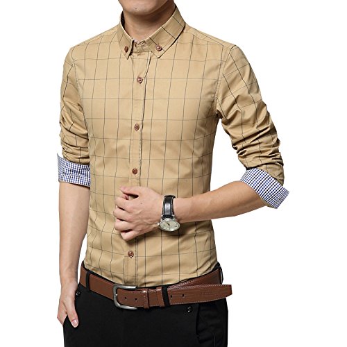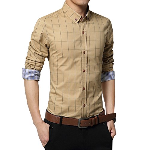 Gfirmament Mens Cotton Long Sleeve Plaid Slim Fit Casual Snap | Desertcart Greece