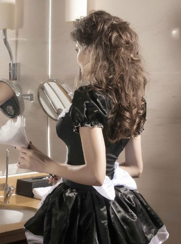 Sexy French Maid Fancy Dress Outfit Size This Gorgeous French Maid Costume includes: Stunning Black Dress with Attached White Apron Pretty White Lace Trim White Petticoat Attached NO STOCKINGS OR DUSTER INCLUDED