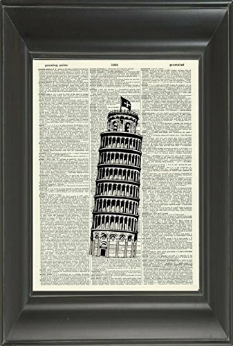 This striking illustration of a the Leaning Tower of Pisa is printed on a page from a vintage dictionary. The page has a lovely old age colour to it which gives it a wonderful vintage feel. Title: Leaning Tower of Pisa Size of print/page: Approx - 8.25" x 12.25" inches This art print would look great framed and would be suitable for any room in the house. There are so many ways that is can be displayed. Please note: The picture will not be printed on the actual page as shown in the photo but on another vintage dictionary page from the same book. -Due to differences in monitors the colours in this print may be slightly different than what you see on your screen. -Framing and matting is not included. The print will be mailed inside a plastic sleeve for protection and will be posted in a flat, stiff, cardboard-backed envelope to ensure safe delivery.