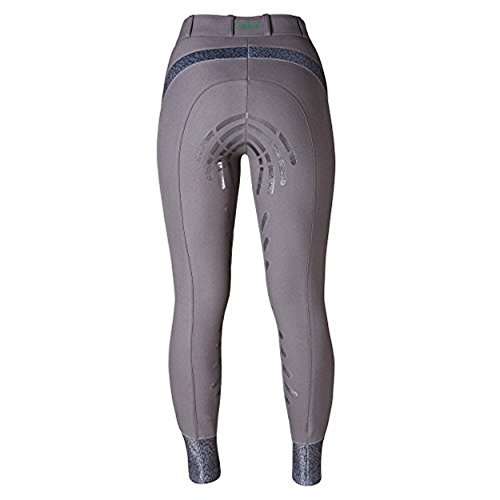 Mid rise breeches made from a 4-way stretch fabric, with subtle sheen stretch panels under the waistband and along the thigh to allow for movement when in the saddle. Ergonomically printed silicone seat and legs for optimised grip and tonal close contact cuffs for a comfortable and sleek look under boots. Front zip pocket, belt loops and contrast stitching. Main body 62% polyester, 33% viscose, 5% elastane. Close contact cuff 88% polyester, 12% elastane.