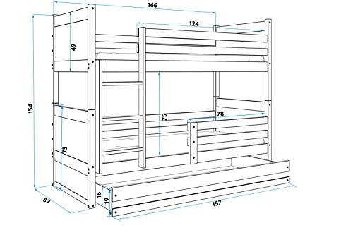 BUNK BED RICO with colorful boards to choose is perfect choice for people who seek stylish looking, solid bed. With beautiful design is the perfect choice for everyone! Not only it does look great but it also guarantees safe and peaceful sleep.This bed is perfect space saving option for your child's bedroom. The ladder and detachable safety rail can be positioned on either side to suit your room. You can also choose to use the bunks as 2 separate beds so you can re-organise room as your children grow up.