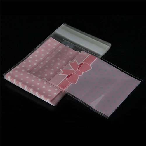 50 Pcs Dot Plastic Adhesive Bag for Candies Cookies Wedding Party PinkSize: 12.5 x 8 cmColor: White + Pink Material: Plastic 50 x Candy bag