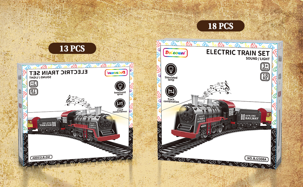 Doloowee Mini Christmas Train ElectricTrain Set with Retro Classic Steam(13pcs) Light & Sounds, Gift for Kids, Boys & Girls 3-6 Years