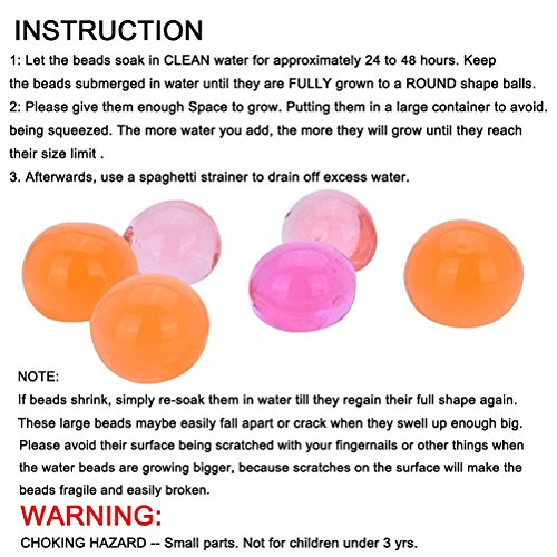 Warm notice:Please keep away from kids under 3 years old,older children must play under adult's supervision; The color of the water balls will be sent at random,thanks
