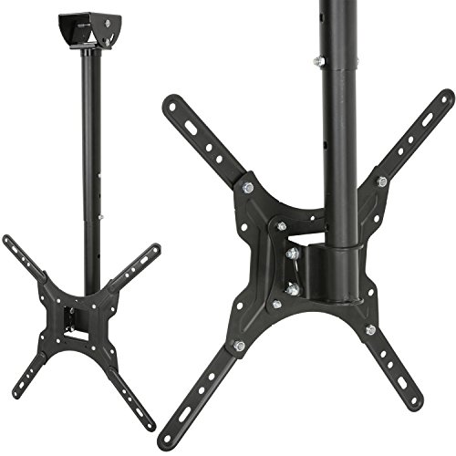 26" - 55" TV Ceiling Mount Bracket Allows you to securely attach and position a TV/Monitor screen from a ceiling. This ceiling mount bracket will hold any TV screen sized 26" to 55" with a weight lower than 30kg. Drop from Ceiling - 510mm (0.51m) to 810mm (0.81). The bracket can be set to three different fixed height levels between the minimum drop of 510mm and the maximum drop of 810mm. Hole Spacing - Compatible with the following VESA hole spacing patterns (the mounting points on the back of your screen): 200mm x 100mm 200mm x 200mm 300mm x 200mm 300mm x 300mm 400mm x 200mm 400mm x 400mm What is VESA? In short, VESA is a hole pattern standard that appears on the back of displays which the majority of large manufactures have agreed to adhere to. Our bracket supports VESA Standards. To check if your monitor is compatible simply measure the distance between the holes on the back of your display. For example, on this bracket VESA 100 means there is 100mm between each hole. Technical Specification: Colour - Black Made from - Robust Steel Alloy Weight limit - 30kg Tilt - -2° to 15° Swivel - -180° to 180° Ceiling Mount Plate size - 152mm x 80mm Weight of Bracket - 3.89kg Fixings - Fixings are supplied for attaching your TV or Projector to the bracket and the bracket to your ceiling. Instructions on how to do this are also included, making the installation very easy.