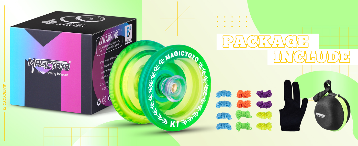 MAGICYOYO Responsive Yoyo K1 for Kids Beginners, Plastic Yoyo with Storage Bag, Glove, 12 Replacement Strings (Green, Yellow)