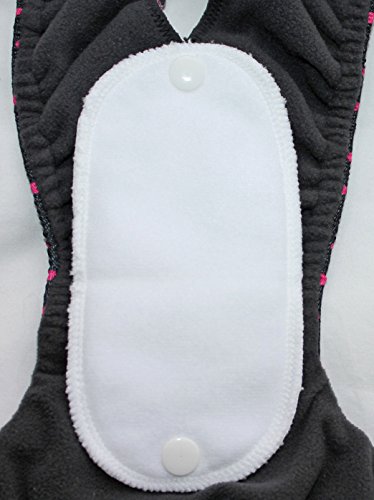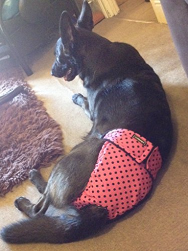 P.U.L breathable waterproof fabric / lined with microfleece Size Extra Small 10" (25cm) - 12.5" (32cm)Size Small - Waist 12" (31cm) - 15" (38.5cm) Size Medium - Waist from - 15" (38.5cm) - 17.5" (44.5cm) Size Medium Long - Waist 17.5" (44.5cm) - 20"(51cm) Size Large - Waist 18" (45cm) - 21"(53cm) Size XL - Waist 21" (53cm ) - 24" (61cm) - for larger breed dogs Size XXL - Waist 24" (61cm) - 27"(69cm) - for larger breed dogs Size XXXL - Waist 27" (69cm) - 30" (76cm) Top fastens with strong hook and loop There is an option to add on TWO or FOUR reusable/washable pads, which fasten to the pants with poppers. For additional Pads - see separate listing Product can also be used with disposable pads. The pads are made from layers of bamboo cotton fleece Laundry - machine wash up to 30C - tumble dry on low, do not iron or use fabric softener. Remember: you will need to regularly check to see if the reusable pad needs changed or washed - if you are using disposable pads, change for a new one when required.