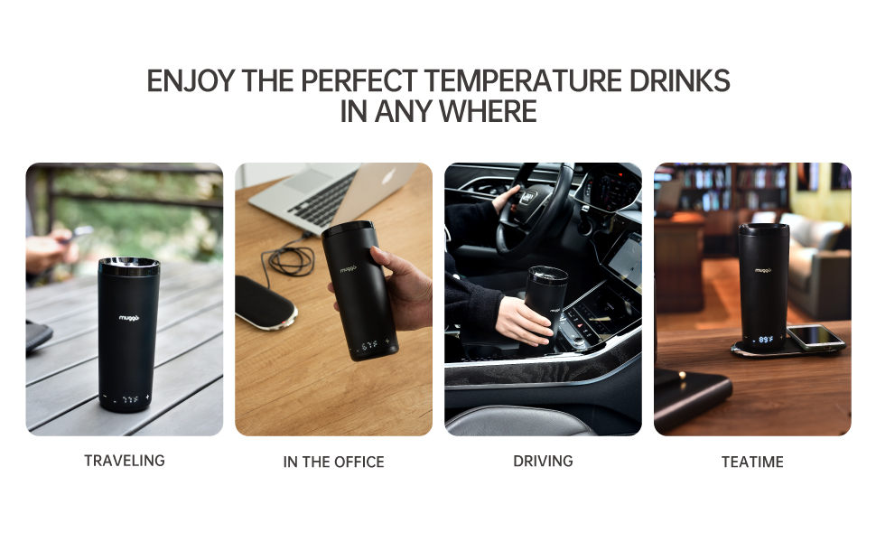 MuggoSelf-Heating 12 oz Coffee Mug with 3 Hour Battery Life, Tea, Coffee, & Hot Beverage Warmer, Heated Travel Mug