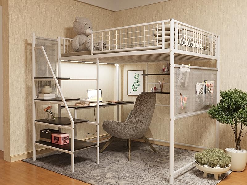 Full Size Loft Bed With Desk And Open Shelves Heavy | Desertcart Greece