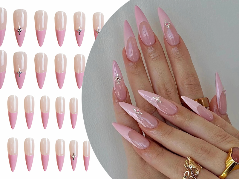 Mervf Long Press On Nails Stiletto Fake Nails Pink French | Desertcart Greece