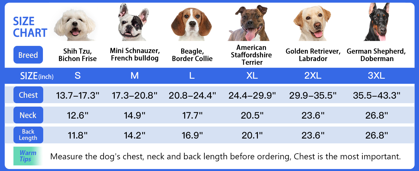 We have 2 Old English Mastiffs and an Irish doodle. They go in and out. I ordered 3X for the big boys and you can see they are coming out of them. Straps came undone quickly on all 3. The Irish doodle needed an XL. So. I think they run small. They do provide warmth. I just wish they had held up longer. The big boys aren’t incredibly active but these didn’t hold up very long. Price was fairly inexpensive so I suppose you get what you pay for. Would be suitable for limited use. I need heavy duty.