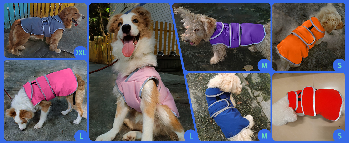 My dog, D-Oh-G, really likes his new jacket! When I put it on him, he prances. Its lightweight, soft and so easy to put on and take off. Living in the Northeast of the USA, it can get pretty cold, wet & rainy and the fleece lining keeps him very warm while the outer layer keeps him dry & warm. I like that it gives some coverage over his chest and upper torso. The belly band with its velcro is long enough to fit dogs of varying belly sizes. I also like the elastic that can go around each back leg to keep the coat tighter to the body. Its very helpful in really windy weather. Plus, you can attach a leash thru small openings either to a collar at the neck or for a harness over the shoulder blades. This coat fits my dog better than any of his other coats. I am very happy with this item!